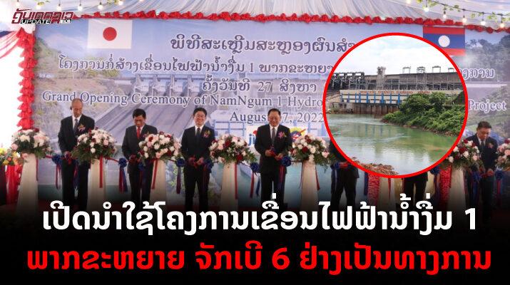 ລັດວິສາຫະກິດໄຟຟ້າລາວ (ຟຟລ) ໄດ້ຈັດພິທີເປີດນໍາໃຊ້ໂຄງການເຂື່ອນໄຟຟ້ານ້ຳງື່ມ 1 ພາກຂະຫຍາຍ ຈັກເປີ 6 ຢ່າງເປັນທາງການ ໃນວັນທີ 27 ສິງຫາ ຜ່ານມານີ້ ທີ່ເຂື່ອນໄຟຟ້ານ້ຳງື່ມ 1, ເມືອງ ແກ້ວອຸດົມ, ແຂວງ ວຽງຈັນ ໂດຍມີ ທ່ານ ສອນໄຊ ສີພັນດອນ ຮອງນາຍົກລັດຖະມົນຕີ, ທ່ານ ດາວວົງ ພອນແກ້ວ ລັດຖະມົນຕີກະຊວງພະລັງງານ ແລະ ບໍ່ແຮ່, ທ່ານ Kenichi Kobayashi ເອກອັກຄະຣາຊະທູດ ຍີ່ປຸ່ນ ປະຈຳ ສປປ ລາວ, ມີພາກສ່ວນກ່ຽວຂ້ອງເຂົ້າຮ່ວມ.