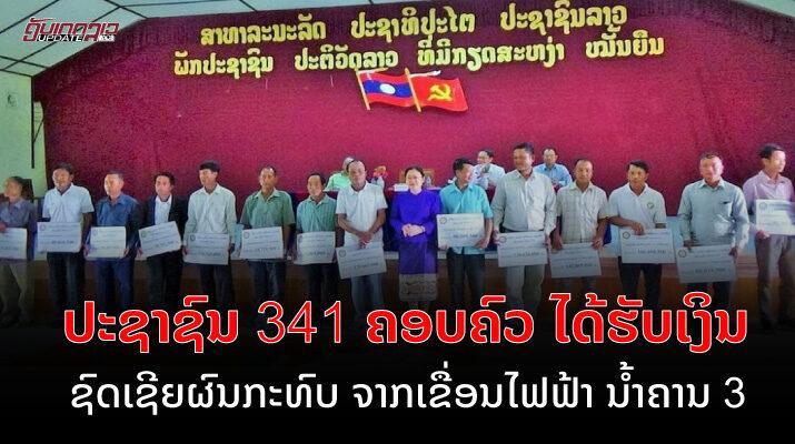 ແຫລ່ງຂ່າວຈາກ ແຂວງ ຫລວງພະບາງ ໃຫ້ຮູ້ວ່າ: ວັນທີ 6 ກັນຍາ ນີ້, ບໍລິສັດ ຜະລິດ-ໄຟຟ້າລາວ ມະຫາຊົນ ໄດ້ມອບເງິນຊົດເຊີຍຜົນກະທົບດ້ານຜົນລະປູກຈາກການກໍ່ສ້າງເຂື່ອນໄຟຟ້າ ນໍ້າຄານ 3 ໃຫ້ປະຊາຊົນ 341 ຄອບຄົວ ຢູ່ເມືອງຊຽງເງິນ ໂດຍມີ ທ່ານ ນາງ ສີລິພອນ ສຸພັນທອງ ຮອງເຈົ້າແຂວງຫລວງພະບາງ, ທ່ານ ສົມແວວເພັດ ດວງປະສິດ ເຈົ້າເມືອງ ຊຽງເງິນ, ມີພາກສ່ວນກ່ຽວຂ້ອງ ແລະ ຄອບຄົວທີ່ຖືກຜົນກະທົບເຂົ້າຮ່ວມ.