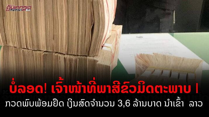 ຜ່ານການກວດກາຕົວຈິງໄດ້ພົບເຫັນເງິນສົດຈໍານວນ 3.600.000 ບາດ ໂດຍຜູ້ນໍາເງິນເຂົ້າມາ ສປປ ລາວ, ໄດ້ຊຸກເຊື່ອງເງິນຈໍານວນ 1,600 000 ບາດຢູ່ໃນກະເປົາ ແລະ ຈໍານວນ 2,
