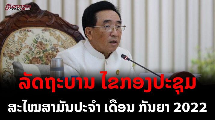 ກອງປະຊຸມລັດຖະບານສະໄໝສາມັນ ປະຈໍາເດືອນກັນຍາ 2022 ໄດ້ດໍາເນີນເປັນເວລາ 2 ວັນ ເລີ່ມແຕ່ຕອນເຊົ້າວັນທີ 22-23 ກັນຍາ 2022 ທີ່ສຳນັກງານນາຍົກລັດ ຖະມົນຕີ, ພາຍໃຕ້ການເປັນປະທານຂອງ ທ່ານ ພັນຄຳ ວິພາວັນ ນາຍົກລັດຖະມົນຕີ, ມີບັນດາທ່ານຮອງນາຍົກລັດຖະມົນຕີ, ສະມາຊິກລັດຖະບານ ແລະ ຜູ້ຕາງໜ້າຈາກບັນດາກະຊວງເຂົ້າຮ່ວມ.