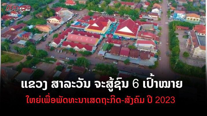 ທ່ານ ໂພສີ ແກ້ວສີພັນແກ້ວ ຫົວໜ້າພະແນກແຜນການ ແລະ ການລົງທຶນ ແຂວງສາລະວັນ ໄດ້ລາຍງານຕໍ່ກອງປະຊຸມອົງການປົກຄອງແຂວງສາລະວັນ ເປີດກວ້າງຄັ້ງທີ 7 ສະໄໝທີ IX ຜ່ານມານີ້ວ່າ: ການຈັດຕັ້ງປະຕິບັດແຜນພັດທະນາເສດຖະກິດ-ສັງຄົມ ຂອງແຂວງສາລະວັນ, ໃນປີ 2023 ນີ້ແມ່ນເປັນທີ 3 ໃນການຈັດຕັ້ງຜັນຂະຫຍາຍແຜນ 5 ປີຄັ້ງ IX ຂອງອົງຄະນະພັກແຂວງ, ເພື່ອໃຫ້ບັນລຸເປົ້າໝາຍ ແລະ ທິດທາງ ຈຸດສຸມຂອງແຜນພັດທະນາເສດຖະກິດ-ສັງຄົມ ປີ 2023 ຕ້ອງສຸມໃສ່ປະຕິບັດ 6 ເປົ້າ ໝາຍໃຫຍ່, 17 ແຜນວຽກຈຸດສຸມຄື: ເປົ້າໝາຍທີ 1 ເສດຖະກິດຂະຫຍາຍຕົວຕໍ່ເນື່ອງ, ມີຄຸນນະພາບ, ໝັ້ນທ່ຽງ ແລະ ຍືນຍົງລວມຍອດຜະລິດຕະພັນພາຍໃນ (GDP) ເພີ່ມຂຶ້ນສະເລ່ຍ 6,9% ດ້ວຍມູນຄ່າ 5.561 ຕື້ກີບ ສະເລ່ຍໃສ່ພົນລະເມືອງ 11 ລ້ານກວ່າກີບ ໃນນັ້ນກະສິກຳ-ປ່າໄມ້ ແລະ ການປະມົງ ເພີ່ມຂຶ້ນ 2,8% ກວມເອົາ 40%, ອຸດສາຫະກຳ ເພີ່ມຂຶ້ນ 8,8% ກວມເອົາ 23%, ບໍລິການ, ພາສີຂາເຂົ້າເພີ່ມຂຶ້ນ 9,1% ກວມ 37% ຂອງລວມຍອດຜະລິດຕະພັນພາຍໃນ, ດ້ານການລົງທຶນໃນ 4 ແຫຼ່ງທຶນມີ 1.407 ຕື້ກີບ, ທຶນລັດ 125 ຕື້ກີບ ກວມເອົາ 8,88% ຂອງທຶນລັດທັງໝົດ, ທຶນຊ່ວຍເຫຼືອເພື່ອການພັດທະນາ 170 ຕື້ກີບ ກວມເອົາ 12%, ທຶນເອກະຊົນພາຍໃນ ແລະ ຕ່າງປະເທດ 522 ຕື້ກີບ ກວມເອົາ 37% ແລະ ແຫຼ່ງທຶນອື່ນໆ 590 ຕື້ກີບ ກວມເອົາ 42% ຂອງທຶນທັງໝົດ, ຄາດຄະເນລວມຍອດລາຍຮັບທັງໝົດ 180 ຕື້ກີບ ແລະ ລາຍຈ່າຍ 40 ຕື້ກີບ, ຄາດຄະເນລວມຍອດລາຍຮັບທັງໝົດ 180 ຕື້ກີບ, ລາຍຈ່າຍ 400 ຕື້ກວ່າກີບ, ມູນຄ່າການສົ່ງອອກ 1.200 ຕື້ກວ່າກີບ ແລະ ນຳເຂົ້າ 180 ຕື້ກວ່າກີບ, ເປົ້າໝາຍທີ 2 ຊັບພະຍາກອນມະນຸດມີຄຸນນະພາບດີຂຶ້ນ, ທັງມີຄວາມສາມາດນຳໃຊ້ວິທະຍາສາດ -ເຕັກໂນໂລຊີ ແລະ ພູມປັນຍາ ເພື່ອສົ່ງເສີມຜະລິດຕະພັນ ແລະ ການບໍລິການໃຫ້ມີຫຼາກຫຼາຍ, ເປົ້າໝາຍທີ 3 ຊີວິດການເປັນຢູ່ຂອງປະຊົນໄດ້ຮັບການຍົກລະດັບດີຂຶ້ນສູ້ຊົນເຮັດໃຫ້ຄອບຄົວທຸກຍາກຫຼຸດລົງໃຫ້ໄດ້ 1 ພັນ ຄອບຄົວ, ບ້ານທຸກຍາກຫຼຸດລົງໃຫ້ໄດ້ຫຼາຍກວ່າ 10 ບ້ານ, ສ້າງຄອບຄົວພັດທະນາໃຫ້ໄດ້ 5 ພັນກວ່າຄອບຄົວ, ຄອບວັດທະນາທຳ 1.900 ຄອບຄົວ ແລະ ບ້ານວັດທະນາທຳໃຫ້ໄດ້ 20 ບ້ານຂຶ້ນໄປ,ເປົ້າໝາຍທີ 4 ປົກປັກຮັກສາສິ່ງແວດລ້ອມໃຫ້ມີຄວາມສົມດຸນ ແລະ ຫຼຸດຜ່ອນຄວາມສ່ຽງຈາກໄພພິບັດທຳມະຊາດໂດຍການສືບຕໍ່ບູລະນາຮັກສາປ່າໄມ້ໃຫ້ມີເນື້ອທີ່ປົກຄຸມໃຫ້ໄດ້ 72% ຂອງເນື້ອທີ່ທົ່ວແຂວງ, ເປົ້າ ໝາຍທີ 5 ສ້າງພື້ນຖານໂຄງລາງໃຫ້ມີຄວາມເຂັ້ມແຂງ, ນໍ້າໃຊ້ທ່າແຮງ, ກາລະໂອກາດ, ທີ່ຕັ້ງ, ຮ່ວມມື ແລະ ເຊື່ອມໂຍງກັບພາກພື້ນ-ສາກົນ, ສືບຕໍ່ກໍ່ສ້າງ ແລະ ຍົກລະດັບເສັ້ນທາງທີ່ຈຳເປັນເພື່ອເຊື່ອມຈອດແຕ່ລະບ້ານຫາເມືອງ, ບ້ານຕໍ່ບ້ານເພື່ອແກ້ໄຂການສັນຈອນໄປມາໃນເຂດຊົນນະບົດ, ກໍ່ສ້າງເສັ້ນທາງໃໝ່ໃຫ້ໄດ້ 12 ກິໂລແມັດ, ທາງດິນແດງ 68 ກິໂລແມັດ, ປູຢາງ 27 ກິໂລແມັດຂຶ້ນໄປ ແລະ ກໍ່ສ້າງຂົວເບຕົງ-ຂົວແຜນ ແລະ ຂົວໄມ້ໃຫ້ໄດ້ 27 ແຫຼ່ງ ແລະ ເປົ້າໝາຍທີ 6 ແມ່ນການຄຸ້ມຄອງບໍລິຫານລັດມີປະສິດທິພາບ ແລະ ສັງຄົມໄດ້ຮັ