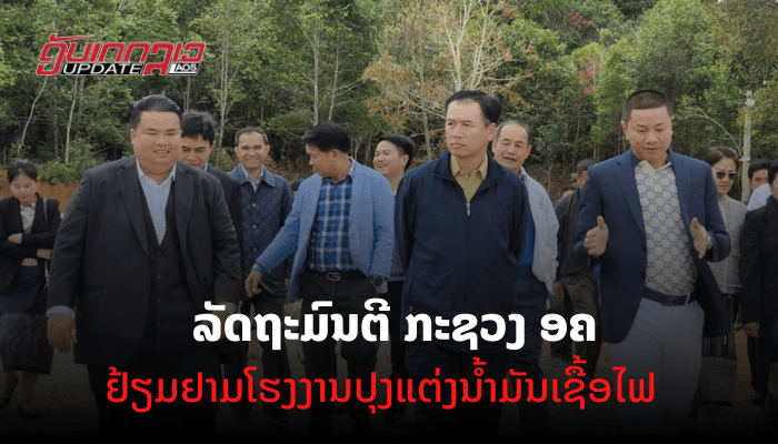 ເມື່ອວັນທີ 17 ມັງກອນ 2023 ຜ່ານມາ, ທ່ານ ມະໄລທອງ ກົມມະສິດ, ລັດຖະມົນຕີກະຊວງອຸດສະຫະກໍາ ແລະ ການຄ້າ (ອຄ) ພ້ອມດ້ວຍຄະນະ ໄດ້ລົງຢ້ຽມຢາມໂຮງງານປຸງແຕ່ງນໍ້າມັນເຊື້ອໄຟ ຍອດງື່ມ ພາວເວີ ມະຫາຊົນ; ພ້ອມທັງລົງເບິ່ງຕົວຈິງຢູ່ພາກສະໜາມຂອງໂຄງການກໍ່ສ້າງ ໂຮງງານກັ່ນຕອງ ແລະ ປຸງແຕ່ງນໍ້າມັນເຊື້ອໄຟ ເຊິ່ງເປັນໂຮງງານແຫ່ງທີ2 ທີ່ກໍາລັງກໍ່ສ້າງພື້ນຖານໂຄງລ່າງ ຢູ່ທີ່ບ້ານດິນດຳ, ເມືອງຄໍາ, ແຂວງຊຽງຂວາງ ຕື່ມອີກ.